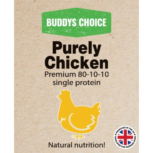 Buddy’s Choice Purely Chicken is a premium, single-protein raw food specially formulated for working dogs. Made with 100% chicken, which includes 10% chicken offal 10% chicken bone. This complementary feed helps maintain muscle mass, support joint health, and enhance vitality. Chicken is a lean protein that promotes muscle development, supports a shiny coat, and is rich in amino acids for recovery and immune function. With no artificial additives, preservatives, or fillers, this raw food is an excellent choice for a clean, natural diet.