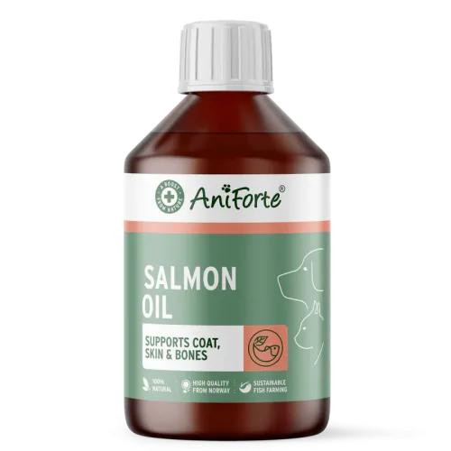 Our Salmon Oil is a 100% natural, high-quality source of omega-3, EPA, DHA, and ALA fatty acids. These essential fats are important for promoting strong bone formation and a good bone constitution. They also aid a glossy coat, prevent hair loss, boost metabolism, stimulate growth, and may help to balance cholesterol and maintain heart health.