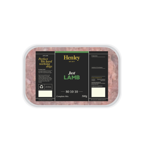 Just Lamb complete feed raw dog food. This is a complete feed containing 80% meat, 10% bone and 10% offal.