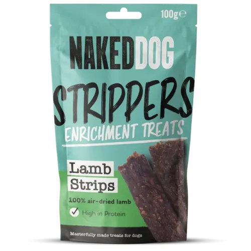 100% air dried Lamb, our STRIPPERS enrichment treats are perfect for enriching every doggie diet. They are delicious and nutritious and are guaranteed to let your dog know what a good boy or girl they've been!