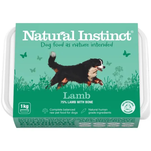 Natural Instinct's Natural Lamb is a complete and balanced raw dog food with a delicious frozen combination of lamb meat with bone (70%), lamb offal (liver, 5%), vegetables and fruits. This complete recipe is ideal for dogs needing to gain some weight or looking for a delicious meal which provides all the essential nutrients necessary for a healthy life.