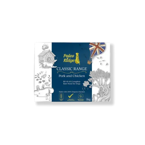 Classic Pork and Chicken is a chunky, complete 80:10:10 raw dog food, minced for your convenience.