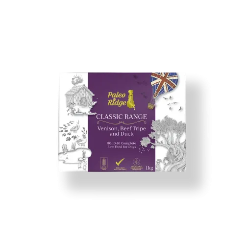 Classic Venison, Beef Tripe and Duck is a complete raw dog food, packed with flavour and several proteins to provide your dog with a tasty product.
